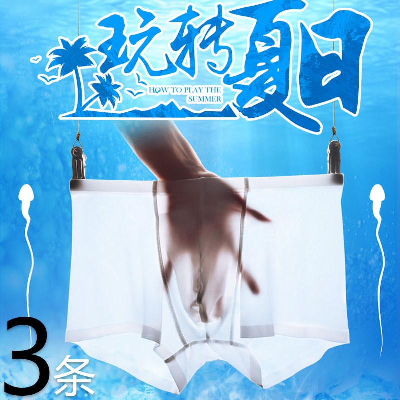 3条男士内裤男平角n裤冰丝无痕夏季超薄透气薄款一片式白色四角裤