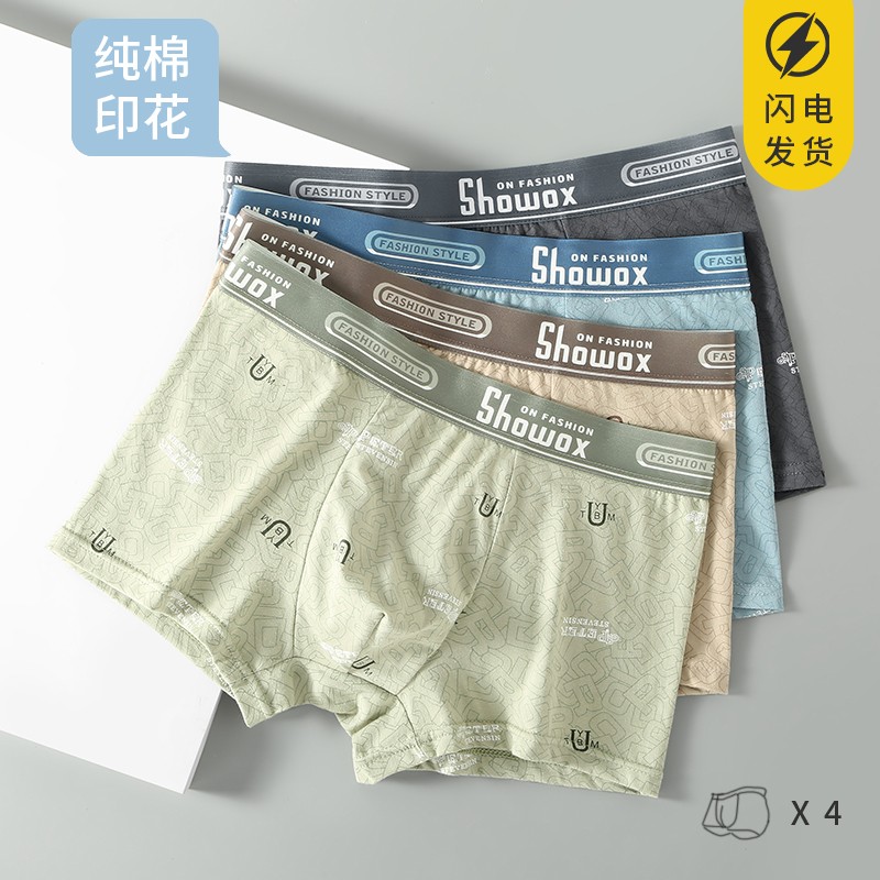 新款直销内裤男士纯棉透气四角裤衩男生平角短裤头潮流个性夏季薄