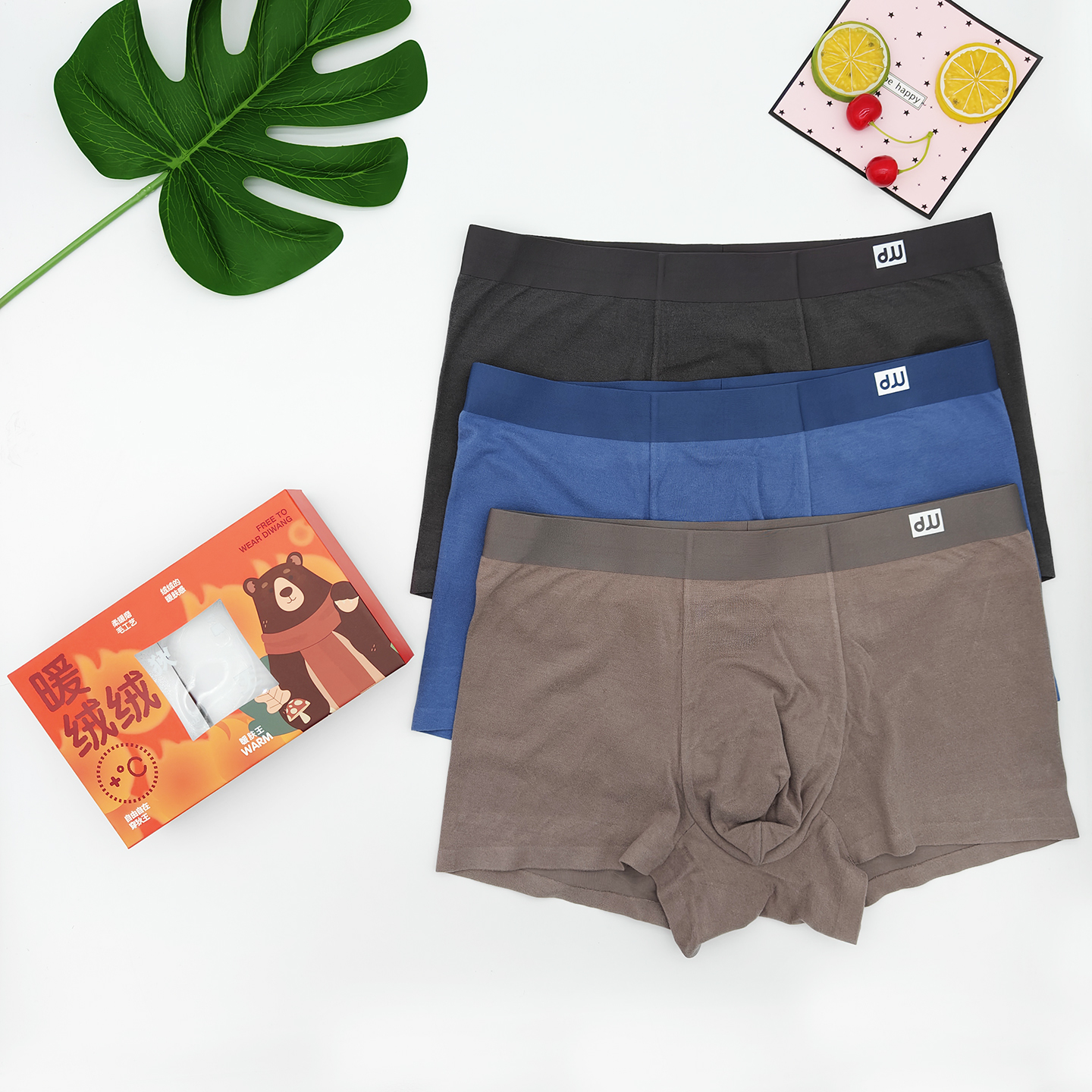 3条装 狄王男士内裤秋冬舒适暖感磨毛绒感透气桑蚕丝抑菌平角短裤