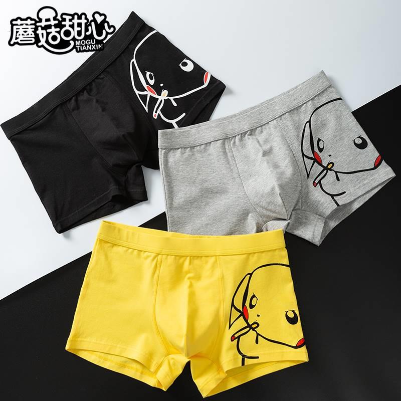 男士内裤男平角裤纯棉夏天卡通透气青年运动可爱中腰个性四角裤头