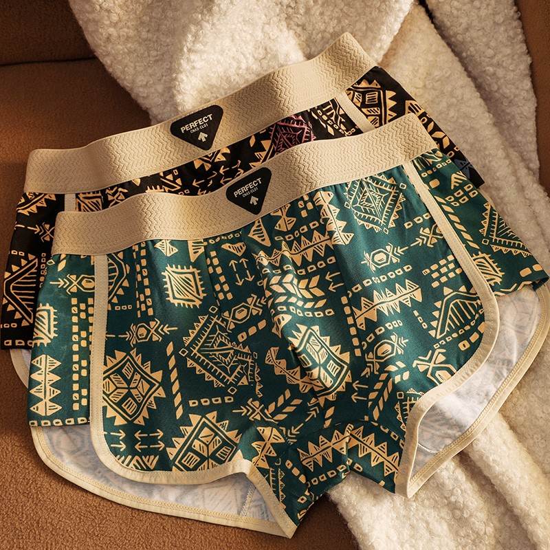 美式复古民族风男士内裤新款男生舒适运动平角裤潮流青年透气裤衩