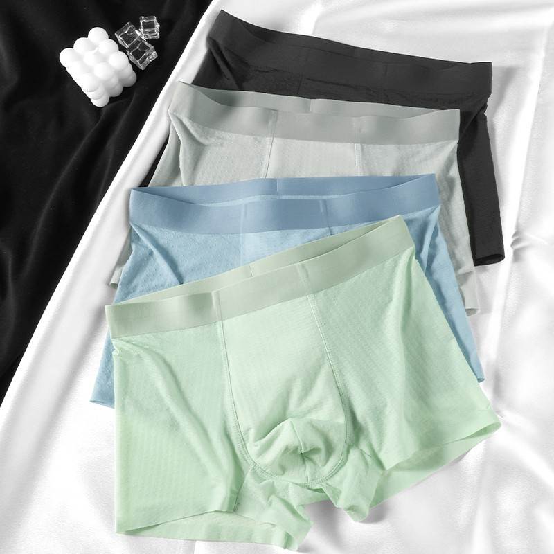 男士透明男生内裤冰丝无痕四角裤夏季薄款平角透气超薄短裤裤衩男