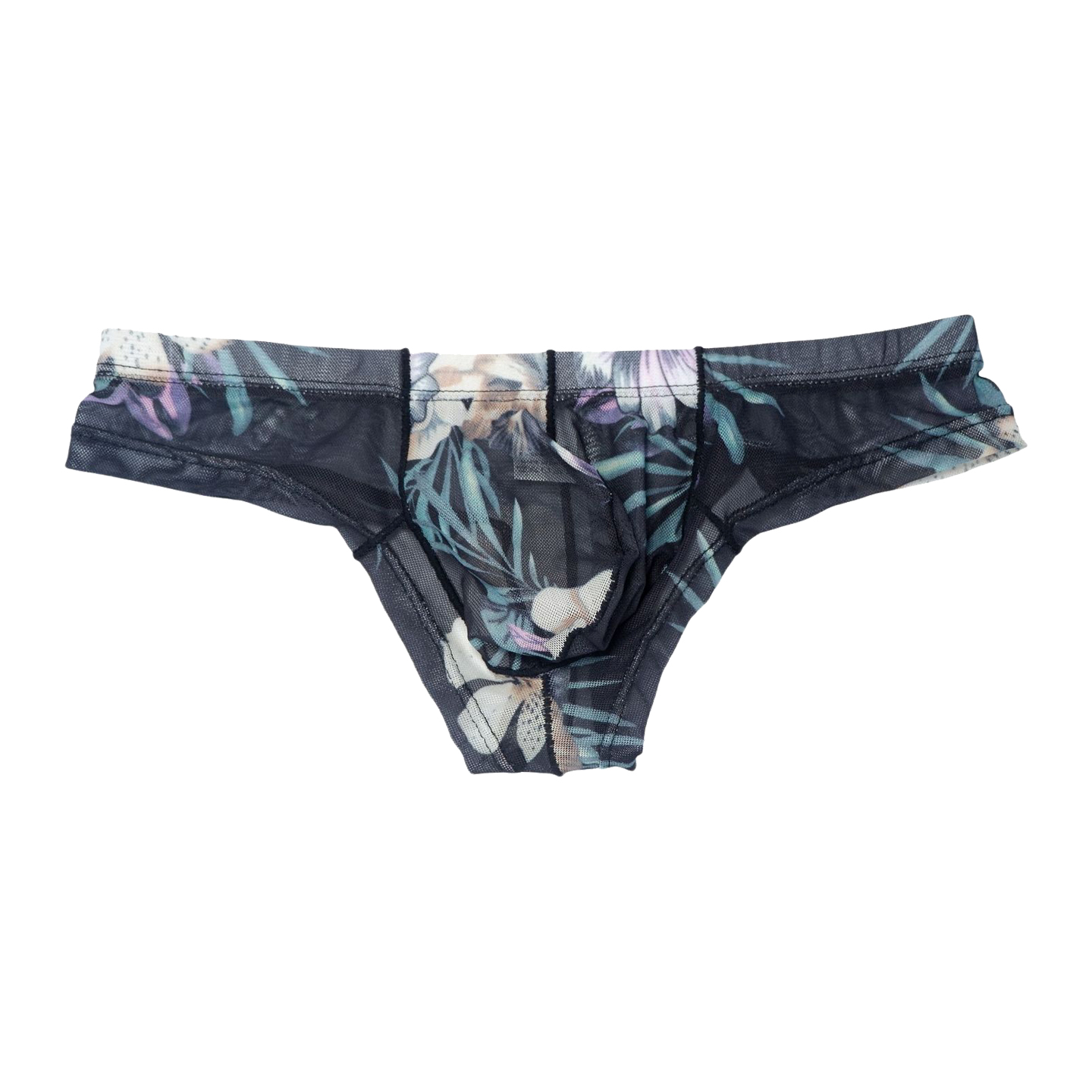 男士印花大囊袋超薄透明小平角内裤性感网纱半包臀丁字裤低腰透气