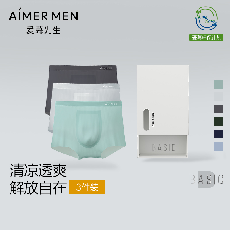 【3件包】爱慕先生内裤男士吸湿速干净痕抗菌净痕腿围装腰平角裤