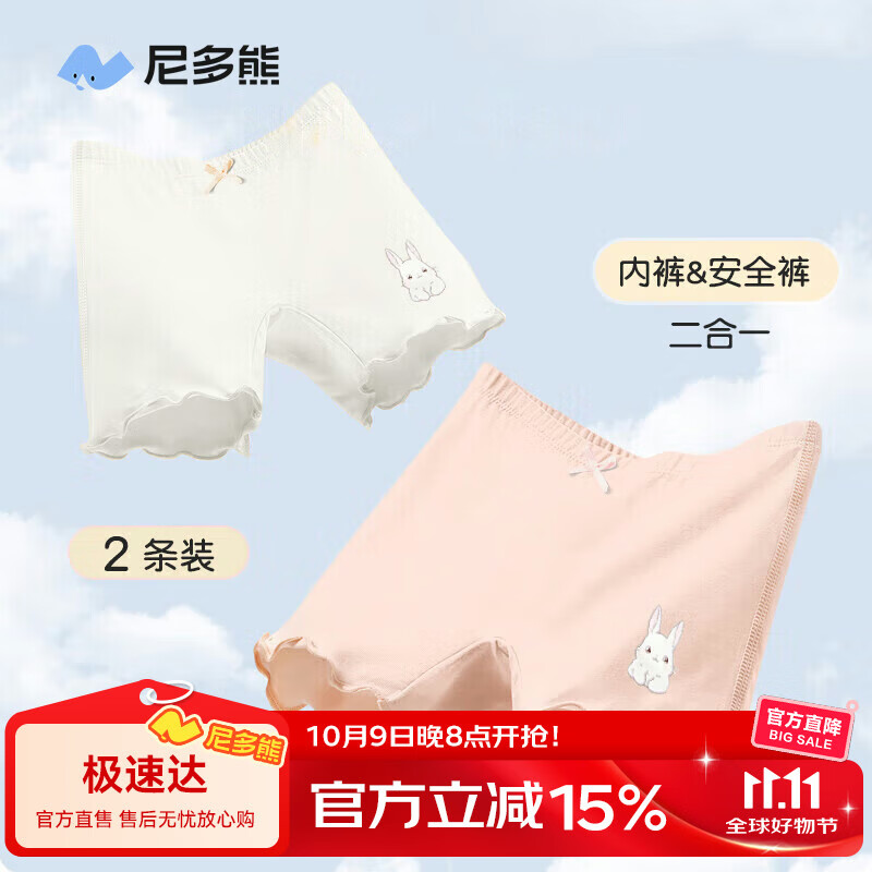 尼多熊安全裤女童四角内裤女宝宝保险平裤女孩防走光底裤2条装