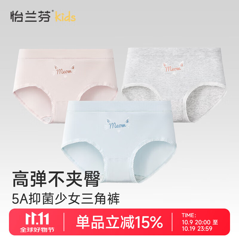 怡兰芬内裤女抗菌少女学生高中生初中生发育期可爱中腰三角裤女孩 蓝色+肤色+花灰 【三角裤】 3条 160 /L(参考体重90-110斤)