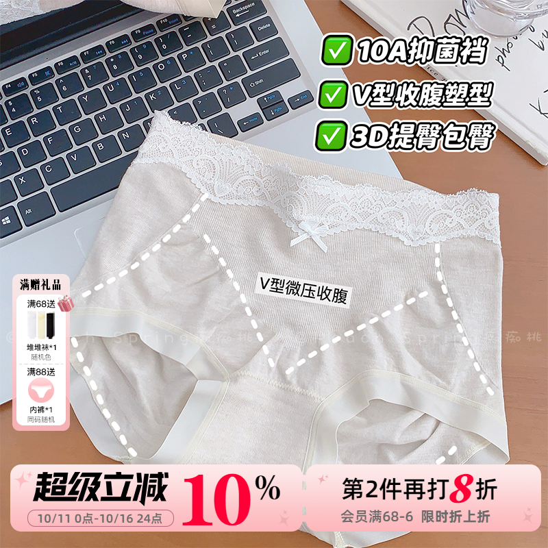 羊皮卷书~法式蕾丝收腹提臀A类桑蚕丝裆10A抑菌女产后妈妈内裤
