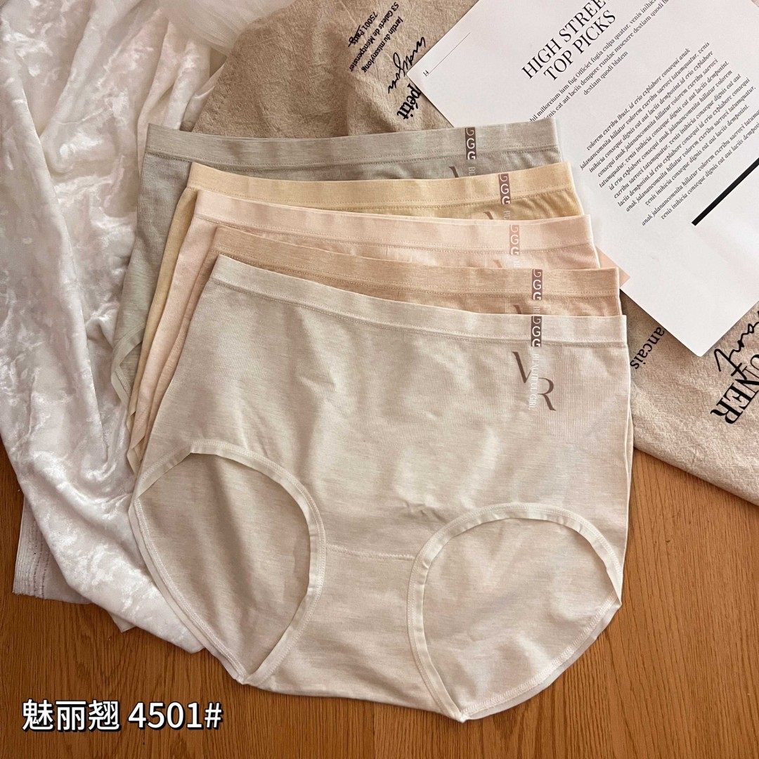 新款魅丽翘4501无缝莫代尔中高腰蚕丝蛋白内裆包臀大码女三角内裤