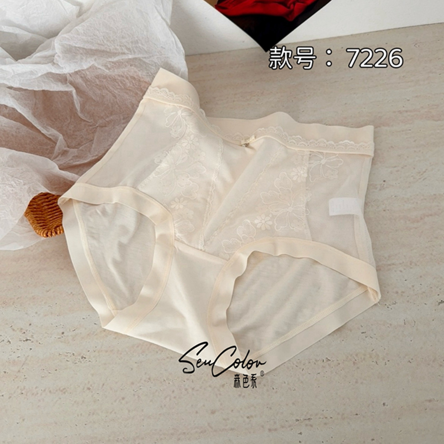 森色系五条盒装纯棉内档网纱蕾丝微透遮肚莫代尔中高腰内裤女7226