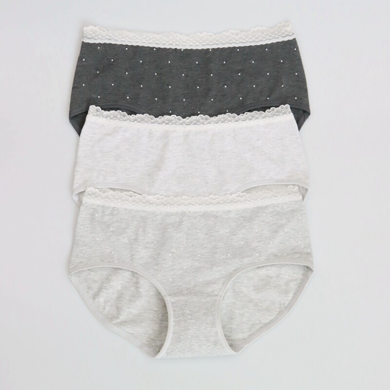 2条CYN 创雅诺弹力棉女内裤99060舒适中腰圆点花边莱卡棉女平角裤