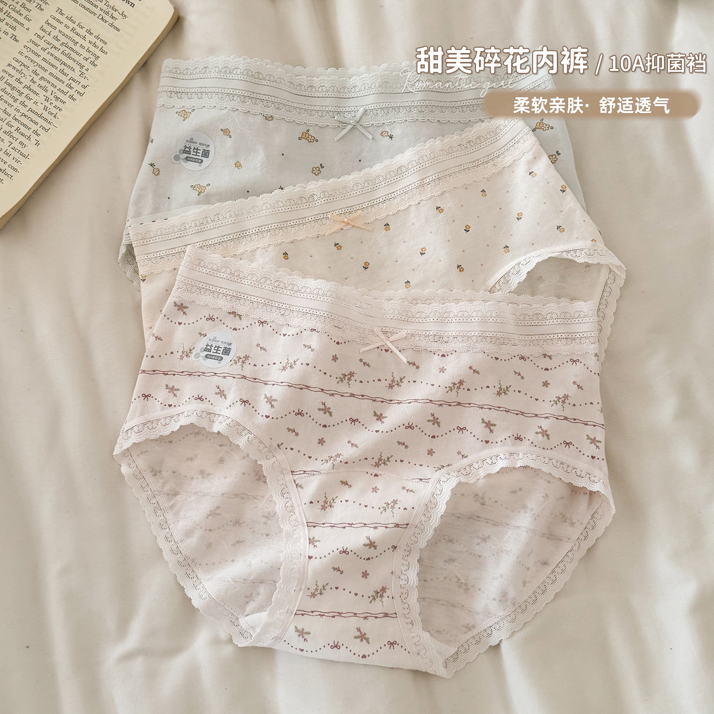 日系性感碎花蕾丝仙女夏季超薄透气内裤女款纯棉全棉裆女生三角裤