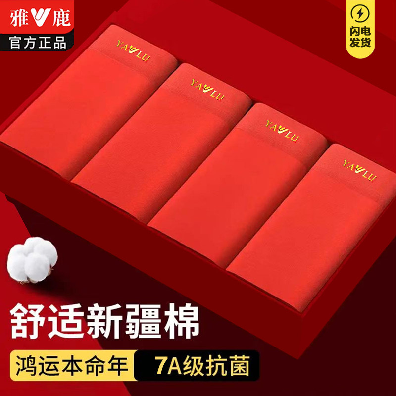 雅鹿正品本命年红内裤男士大码纯棉平角裤男生红色短裤大红四角裤