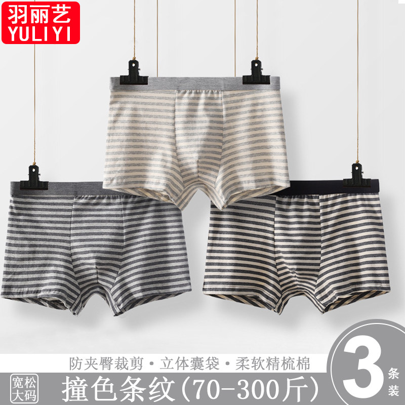 四季可穿宽松大码内裤男潮流新款运动透气精梳棉条纹男士平角短裤