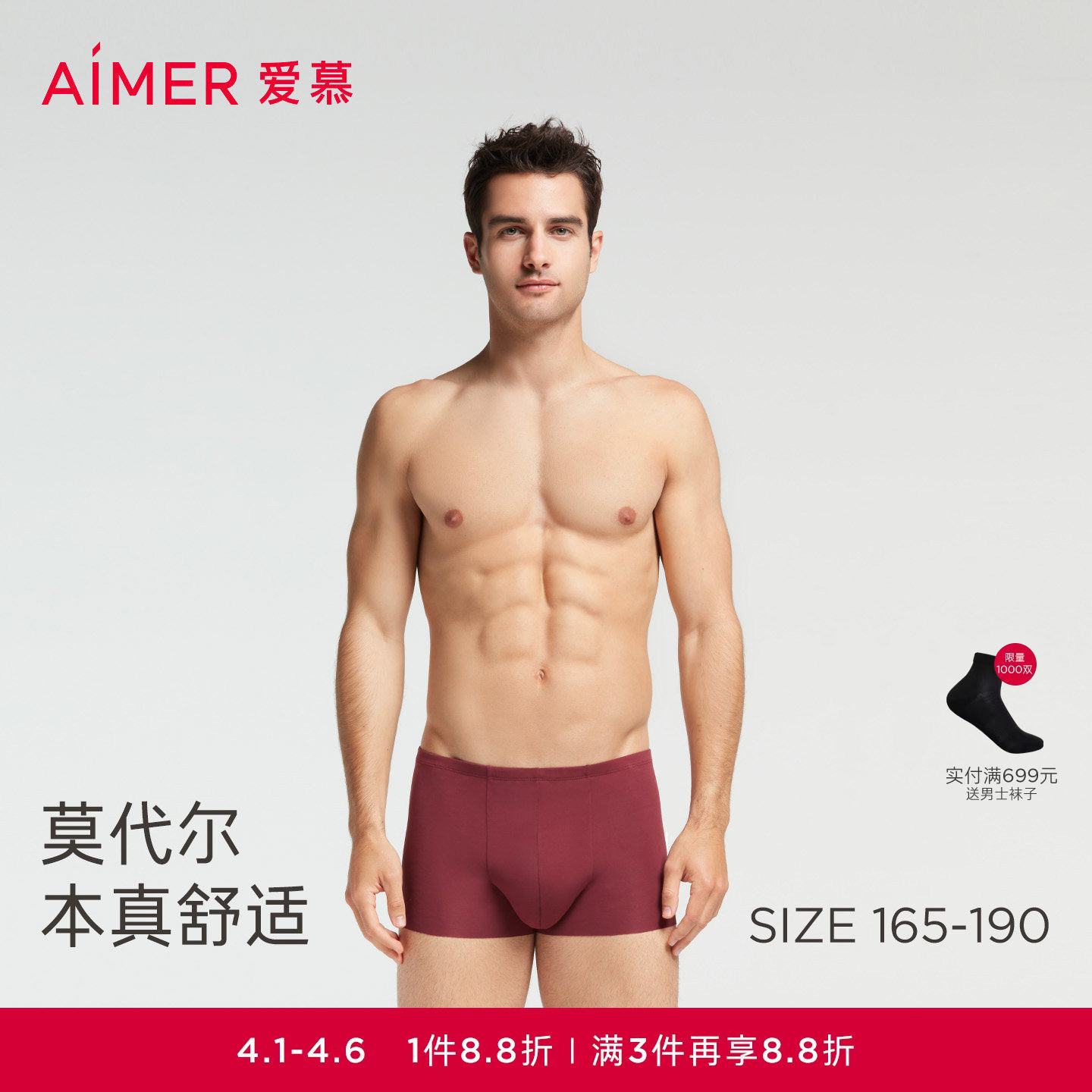 爱慕先生高支天丝莫代尔防夹臀防卡裆男平角本命年红品内裤春夏