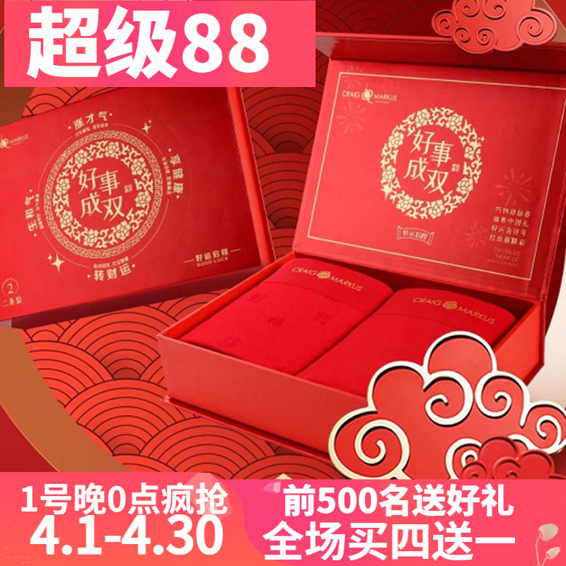 高端礼盒2件装 CRAIG MARKUS木代尔大红婚庆本命年男士内裤CM7420