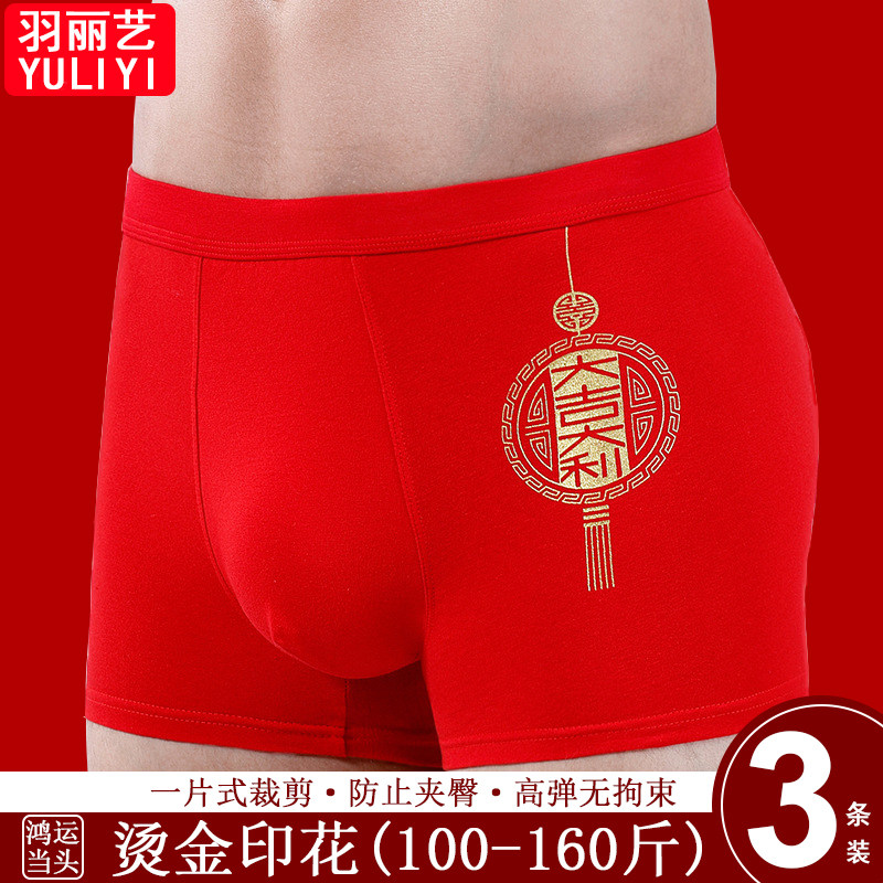 喜庆本命年大红色内裤男士精美烫金印花纯棉裸感双层裆部平角裤