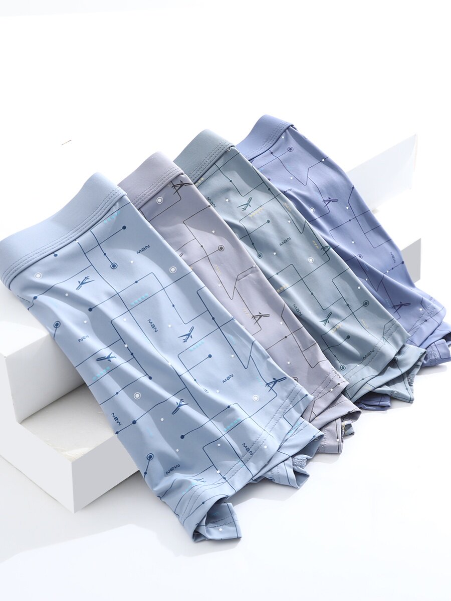 新款男士冰丝内裤男生四角裤抗菌夏季青年平角裤大码薄款中腰裤衩