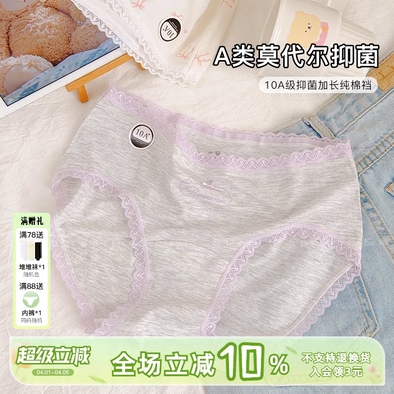 「涂鸦画本」A类莫代尔女生内裤轻盈透气纯棉加长裆10A抑菌不勒热