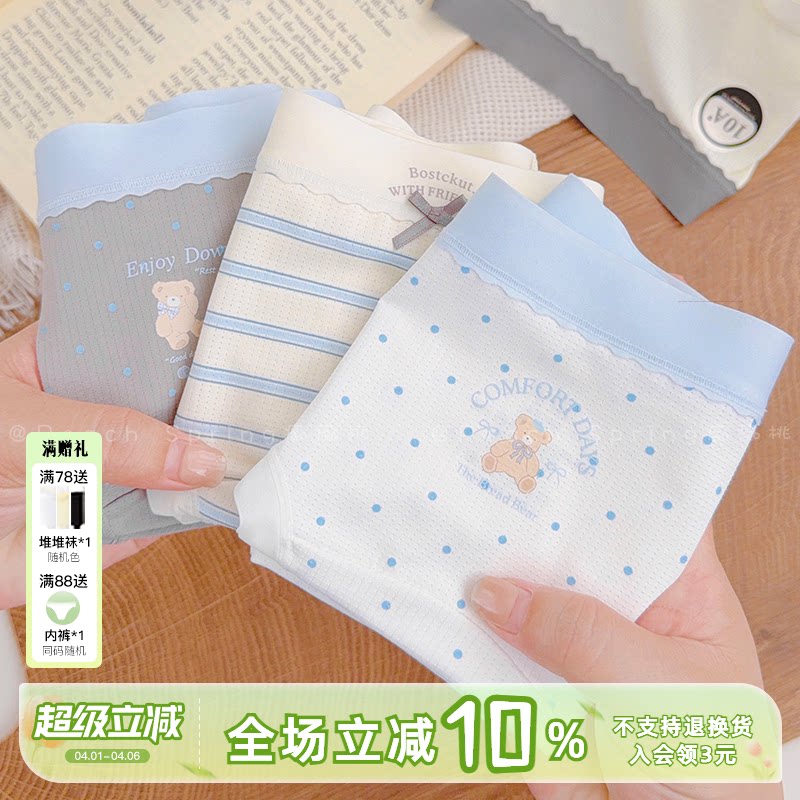 「蜂蜜熊茶」冰丝女生内裤可爱纯棉加长裆10A抑菌宽边无痕2026夏