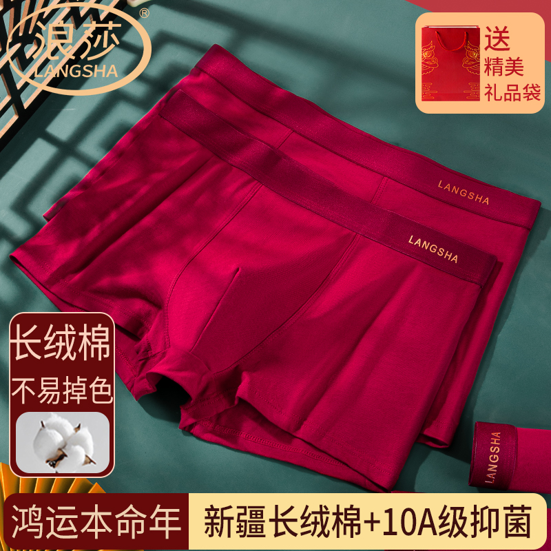 浪莎本命年男士内裤酒红色2025新年新品薄透气短裤结婚礼物平角裤