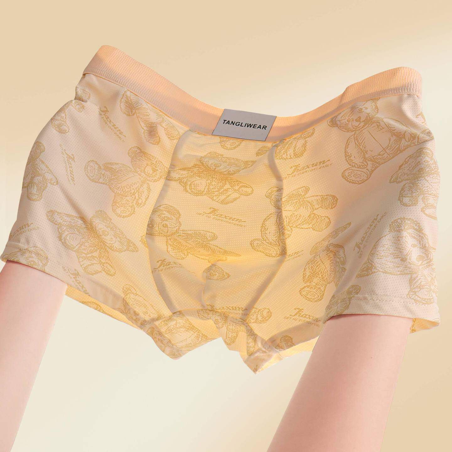 男士冰丝内裤时尚潮流2026新款卡通小熊印花夏季薄款透气抗菌内裤