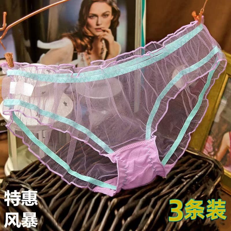 N459舒适女士中低腰纯棉拼蕾丝性感大蝴蝶结可爱女生内裤 M/L/XL