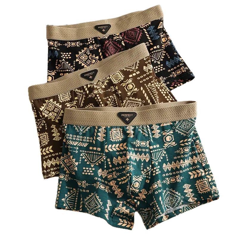 美式复古男士内裤棉质透气舒适平角裤潮流印花性感大码平四角短裤