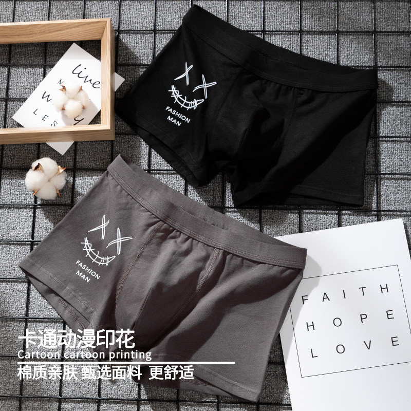 男士内裤纯棉男平角裤夏季透气黑色个性卡通可爱四角裤头潮流短裤