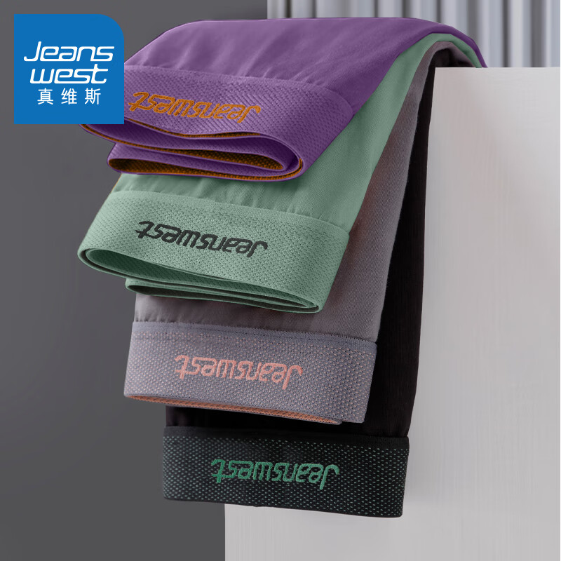 真维斯男士内裤纯棉男生平角裤运动裤衩男式四角裤短裤头大码 紫色+灰色+黑色+绿色4条装 3XL 130-150斤