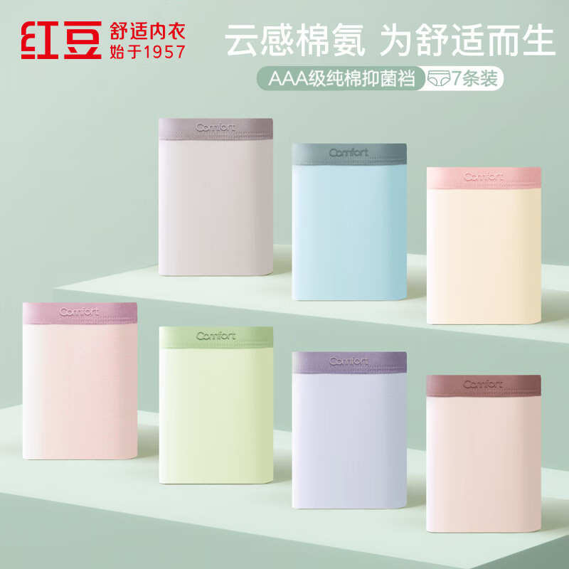 红豆内裤女7条装撞色透气抑菌纯棉裆短裤女士三角裤 组合三 7条 M 165/72A