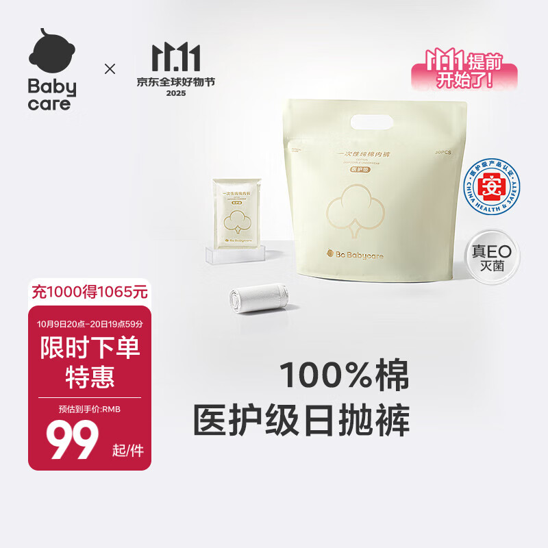 bc babycare【安心灭菌】一次性内裤女纯棉孕产妇产后用品免洗旅行内裤月享装 一次性内裤30条-月享装 L(适合110-130斤)
