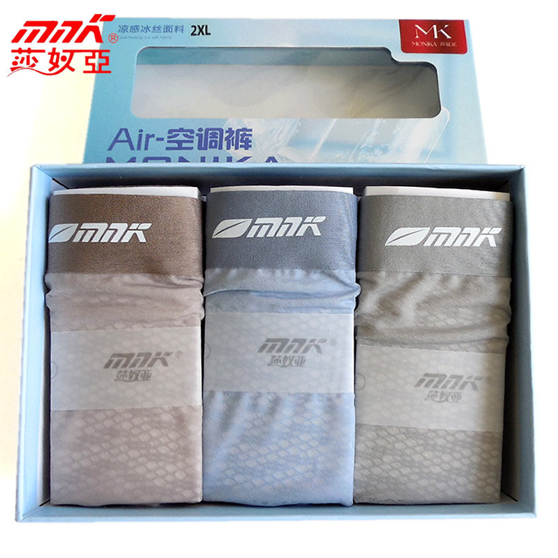 3条 莎奴亚新款冰丝男内裤四角无痕抗菌透气速干平角裤短裤超薄夏
