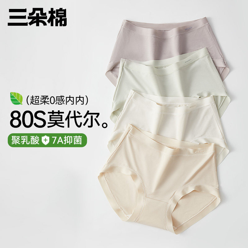 三朵棉80支莫代尔内裤女无痕透气女生三角裤女士纯色中腰乳酸菌裆