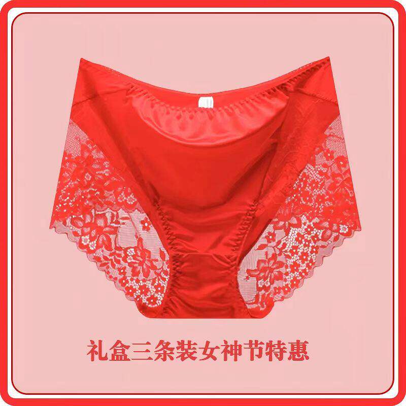 雪溪女士内裤性感蕾丝中腰莫代尔大码红色内裤礼盒装纯棉三角裤a9