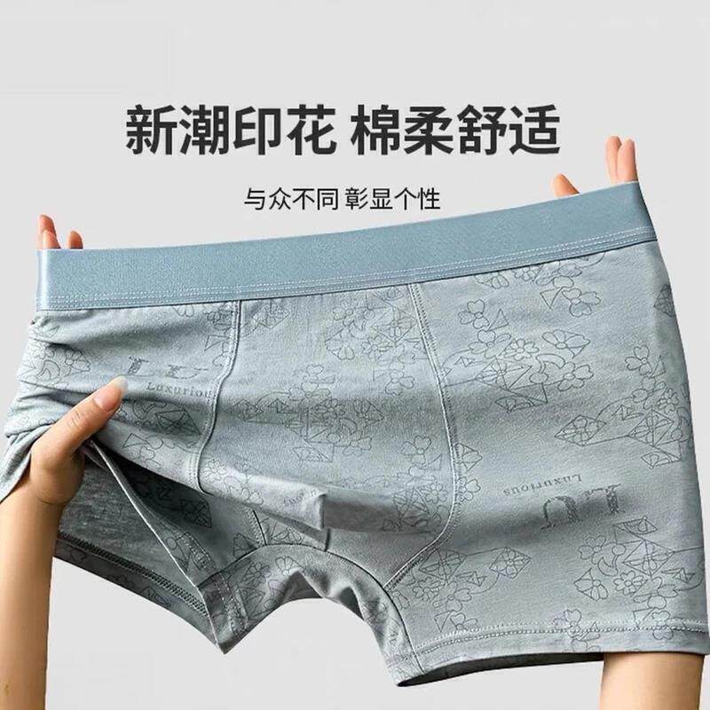 梓程服饰店男士内裤棉质平脚舒适透气10Aq生蚝底裆大尺码印花四Y