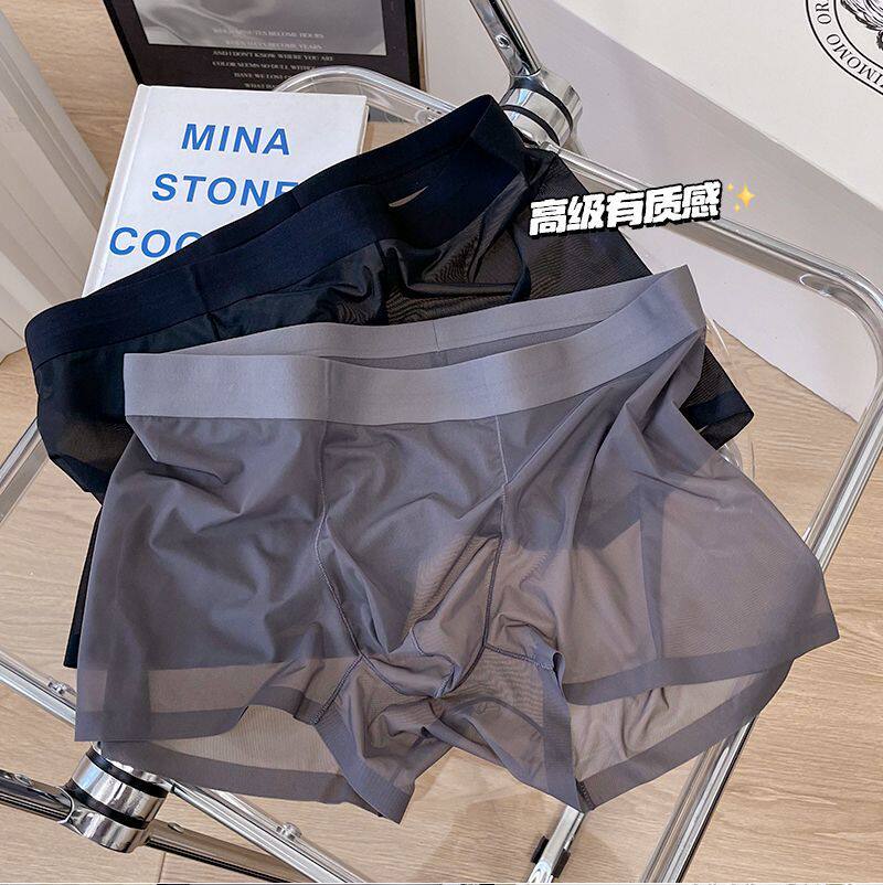 男士黑丝夏内裤冰丝无痕透气抗菌裆平角裤大码四角裤衩冰凉薄裆裤
