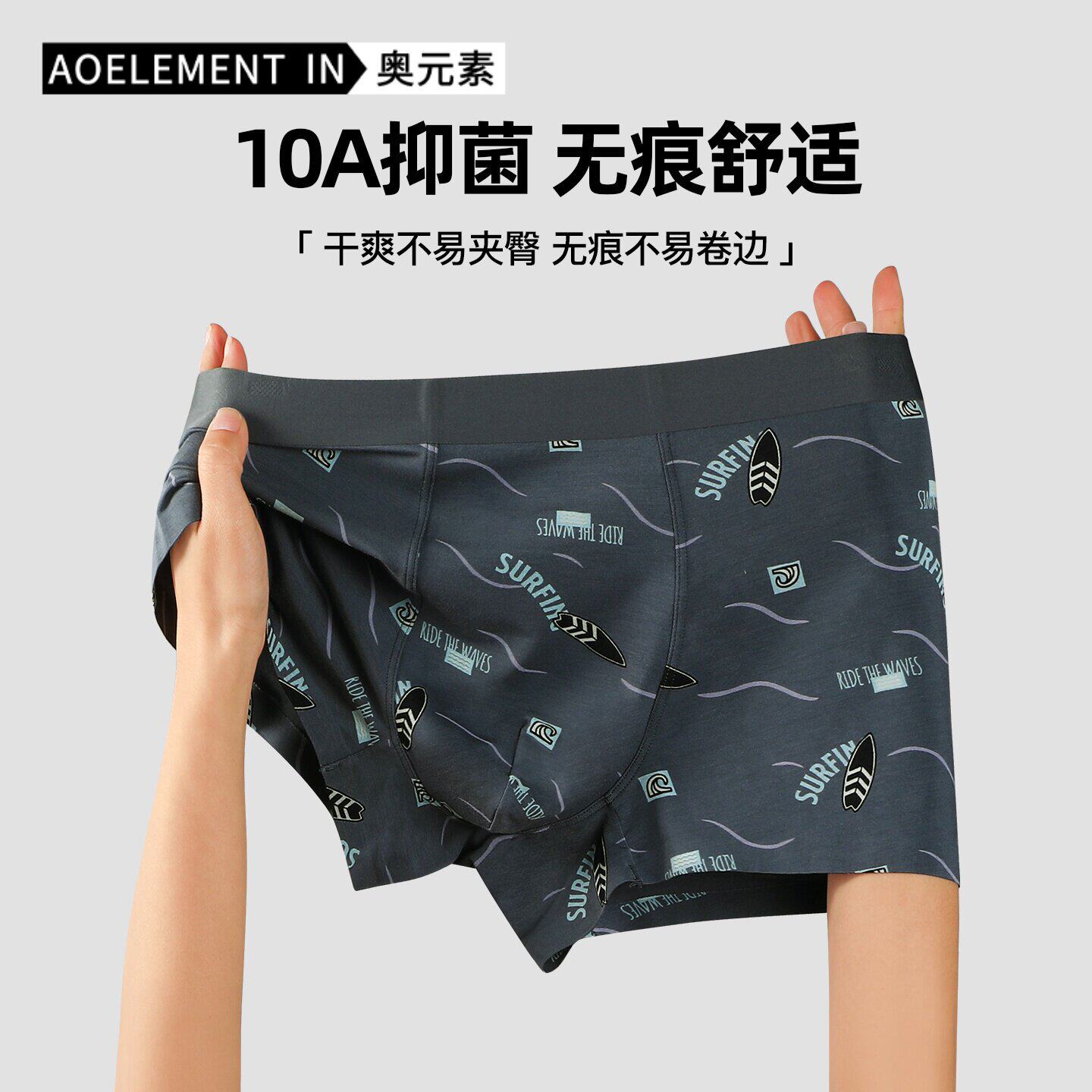 ~瑞奕男缎面内裤凉感冰丝透气四角裤男生高档无痕10A抗菌平角裤a2