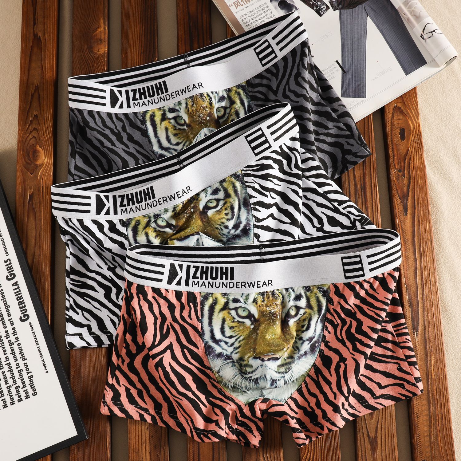 豹纹男士内裤纯棉透气舒适四角裤衩潮流虎头印花个性时尚平角短裤