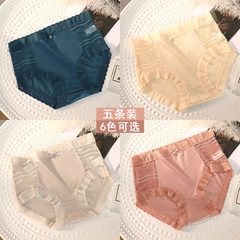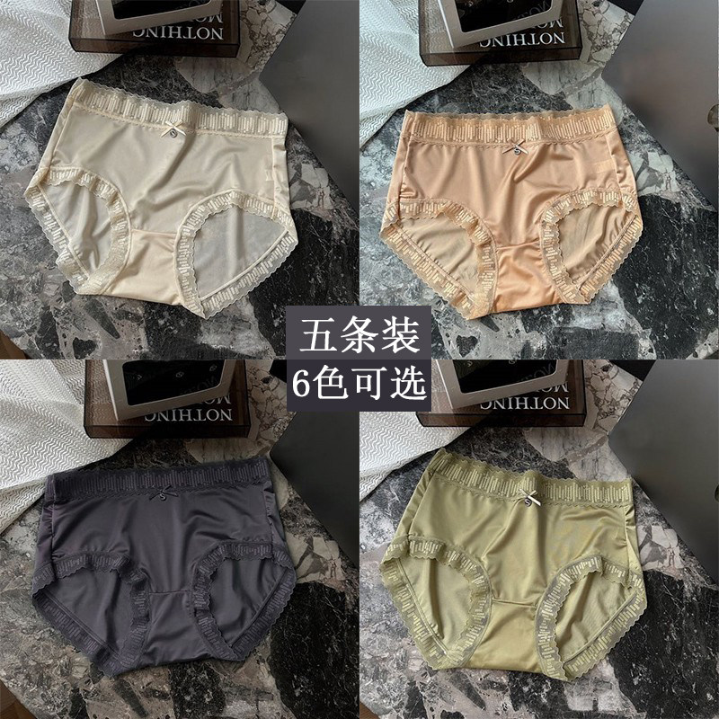 性感拼接丝滑缎面内裤女高弹中腰细腻柔软吸湿透气抑菌裆三角裤