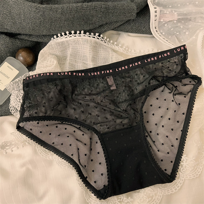 黑色内裤女纯棉裆性感2026新款网纱中腰蕾丝纯欲三角裤女款小心机