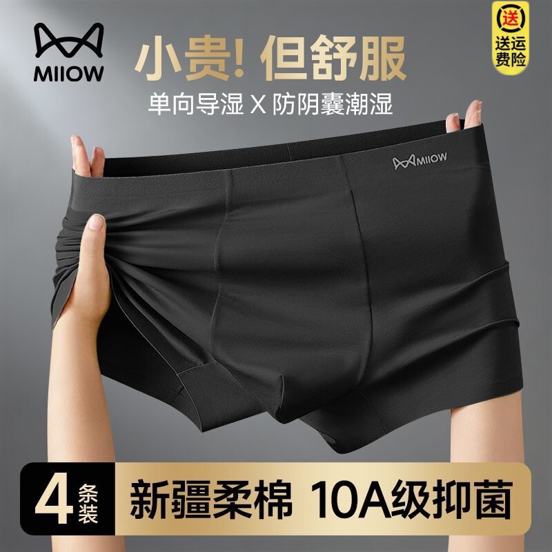 猫人黑色男士内裤男款纯棉平角透气男式四角短裤全棉正品2026新款
