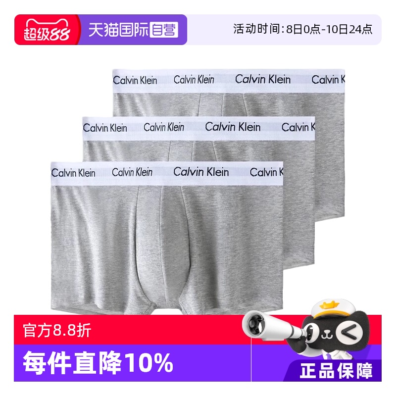 【自营】Calvin Klein/凯文克莱男士平角内裤3条装 多颜色组合