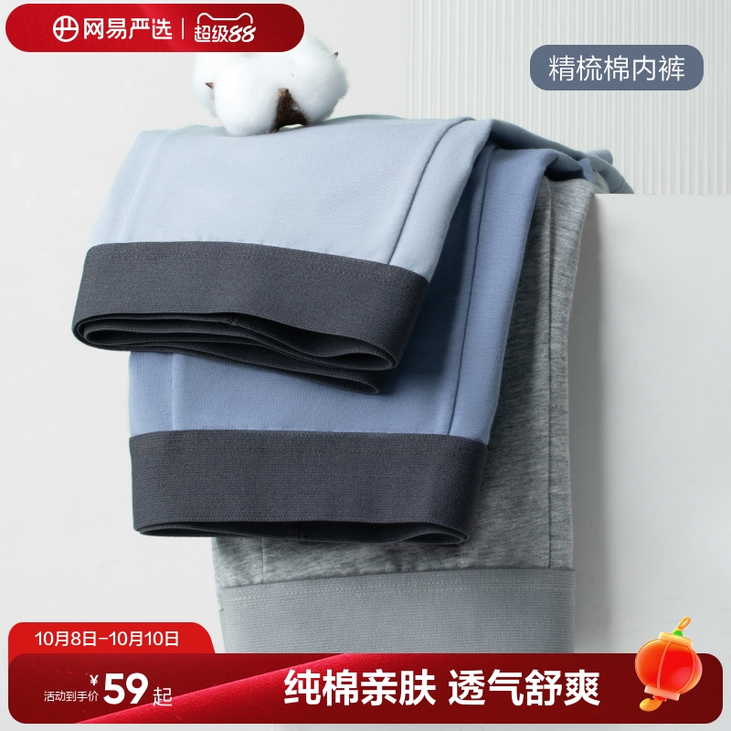 网易严选男士内裤纯棉内档男生2025新款抗菌平角裤舒适透气四角裤