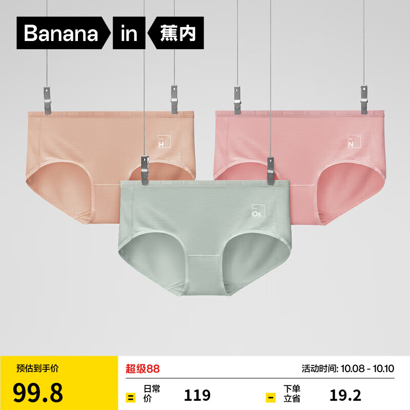 蕉内银皮500E女士内裤80支莫代尔7A抗菌透气防夹臀中腰三角裤礼盒3件 氢肤+氮粉+锇青 3条 M