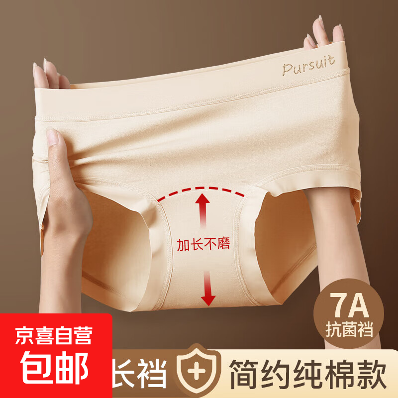 宜而爽7A全棉女士内裤无痕字母中腰抗菌柔软舒适透气纯棉少女三角裤 2浅绿+2浅肤+2深肤+1浅粉 7条 XL