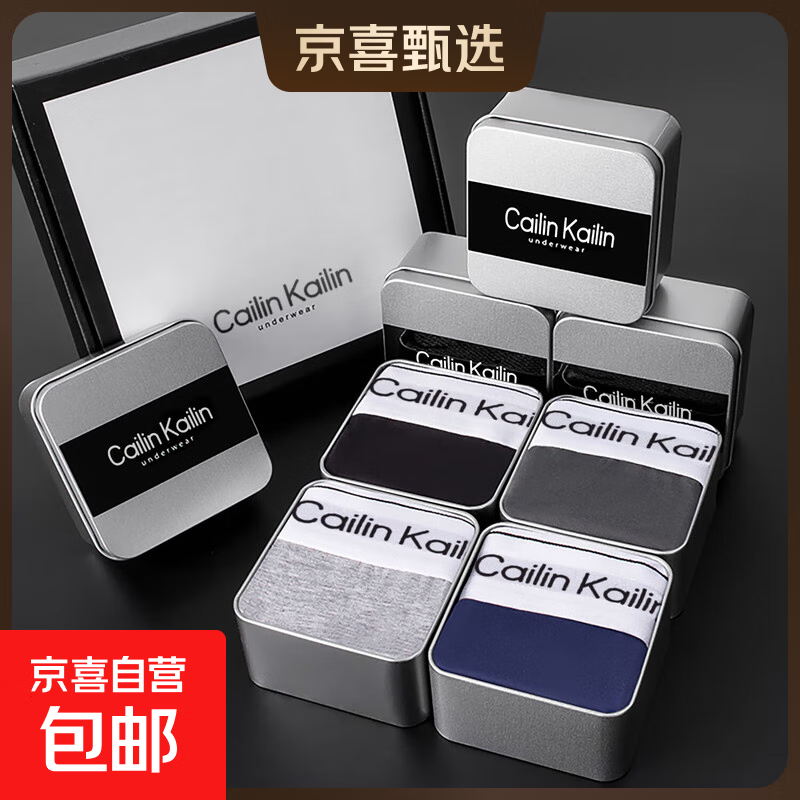 【CK制造商】高级内裤礼盒男莫代尔平角裤四角男士内衣短裤男朋友 黑+深灰+浅灰+蓝:莫代尔 4条 XL (175) 121-150斤