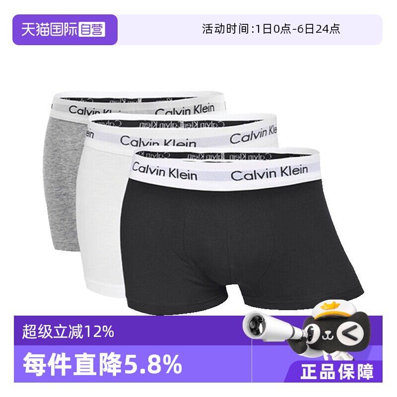 【自营】Calvin Klein/卡尔文克雷恩CK棉内裤男士平角三条装文字