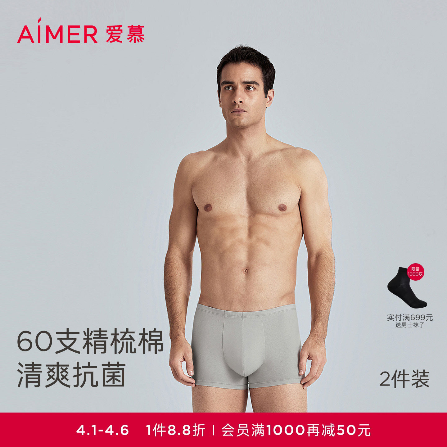 2件装|爱慕先生1号裤60支液氨棉抗菌内裤男士平角裤25年春夏透气
