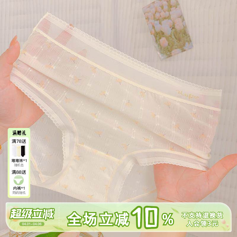 冰丝凉感中腰面膜内裤女抑菌纯棉裆超薄无痕甜美夏季透气三角裤头