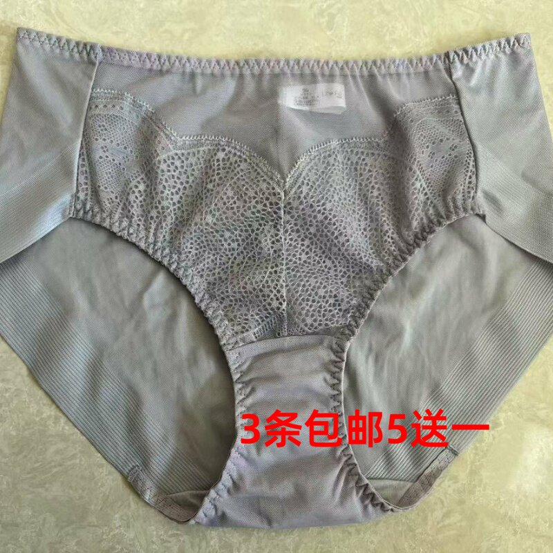 大码内裤女纯棉蕾丝抗菌舒适100%全棉高腰收腹提臀透气女士三角裤